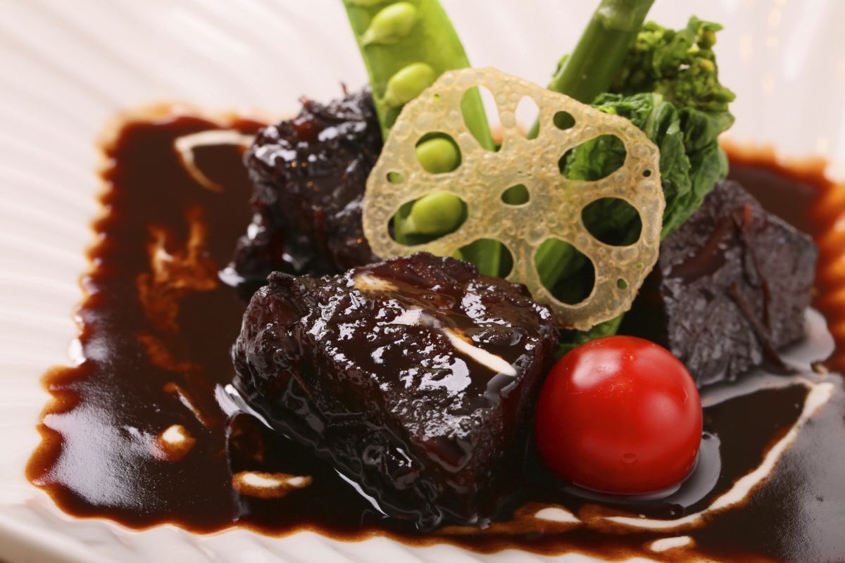 ファームから直接仕入れた牛ホホ肉をじっくりと煮込んだ自慢のメニュー。