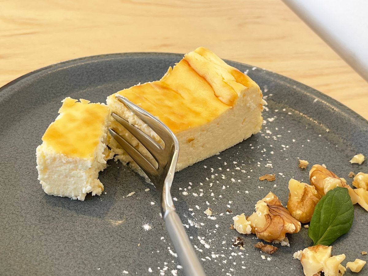 「低糖質・低カロリー チーズケーキ」は、最近ダイエットに成功したというオーナーが健康のことを考え、何度も試作を重ねて完成させた自家製ケーキ。