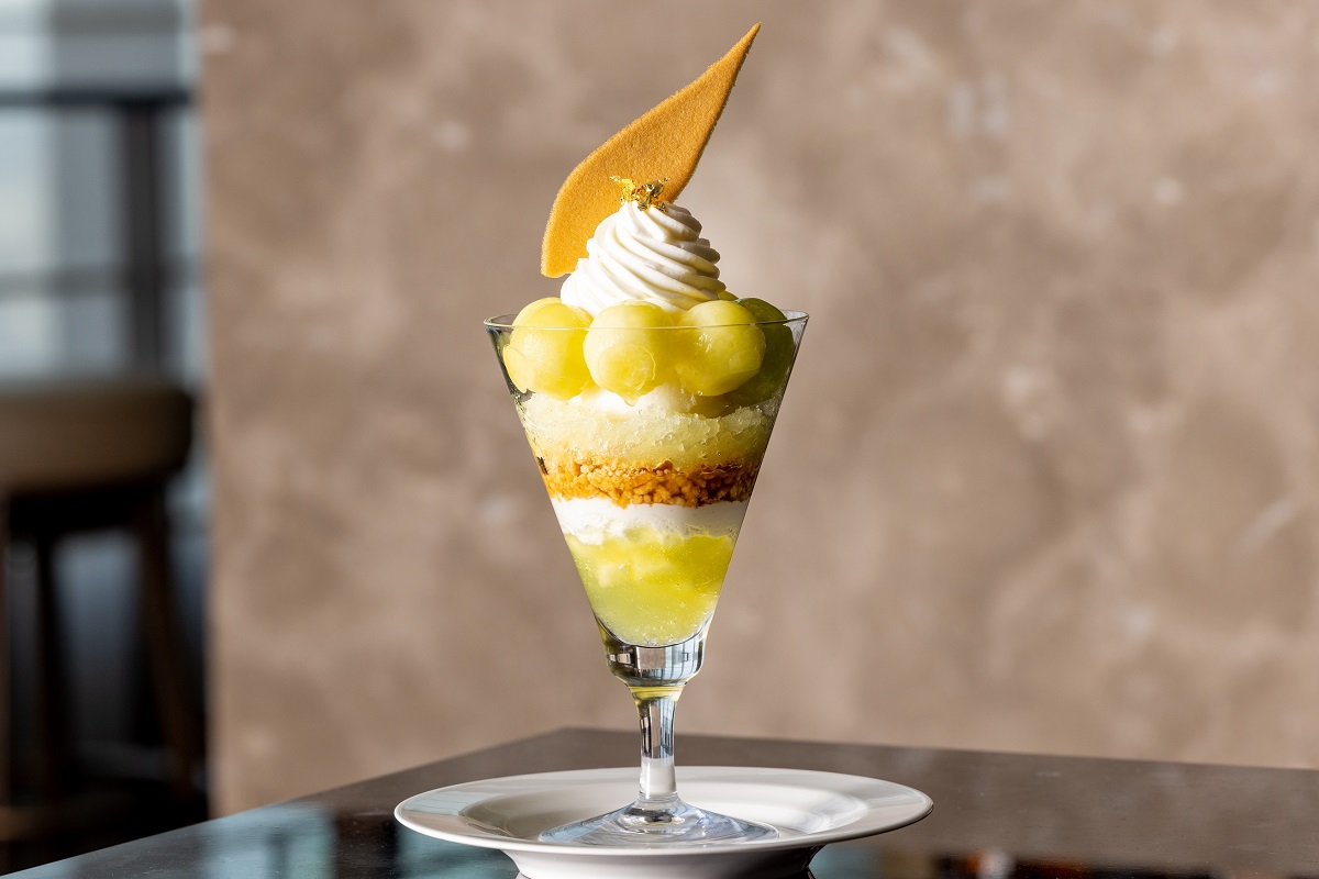 「バーラウンジ スターライト」では、トップフロアからの眺望とともに、オリジナルパフェをいただくこともできます。 7・8月は完熟のマスクメロンをぜいたくに使ったパフェが登場。