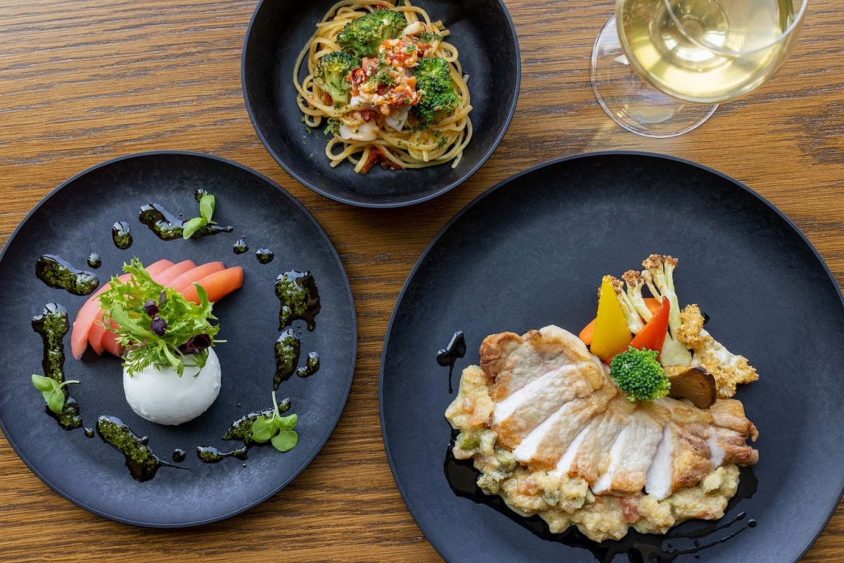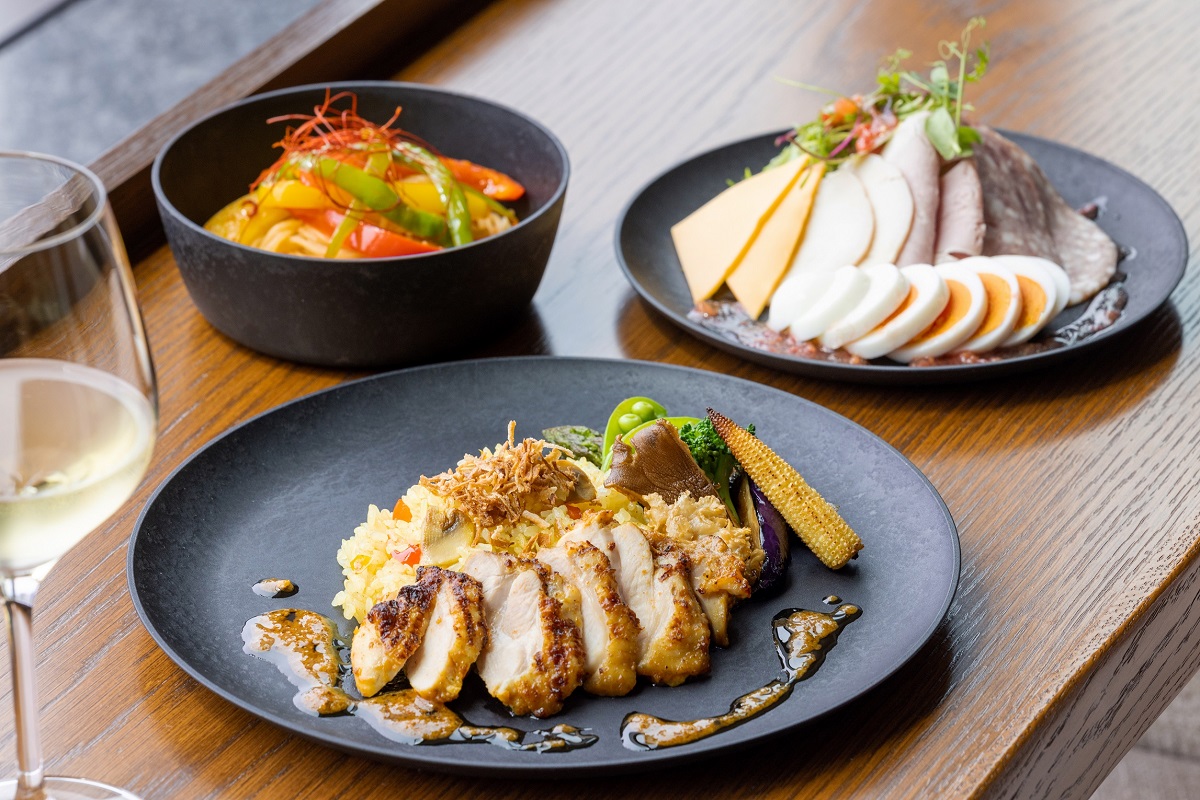 「バーラウンジ スターライト」では、メインディッシュを選択できるランチコース「サンテ」を月替わりでいただけるので、ランチとして訪れるのもおすすめ。このコースでは建築家・隈研吾氏がデザインした「hide k 1896」のレトワコレクションの皿もみどころの一つ。間伐材などを使用し製造された、環境にやさしい器を使用しています。