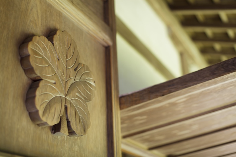 客殿から回廊を進んだ先には、御所の紫宸殿(ししんでん)をモチーフに建てられた宸殿(しんでん)があります。本尊は伝教大師・最澄作と伝わる秘仏の薬師瑠璃光如来(やくしるりこうにょらい)。本殿に向かって左の西の間には歴代住職法親王の尊牌が祀られ、向かって右にある東の間には天皇陛下をお迎えするための玉座が設けられています。