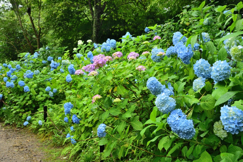 あじさい苑は高低差がある場所に設けられていますが、周遊路も整備されているので雨が降った日でも散策しやすいです。近くには東屋や休憩所も設けられ、休憩しながらアジサイを愛でられるのもいいですね。