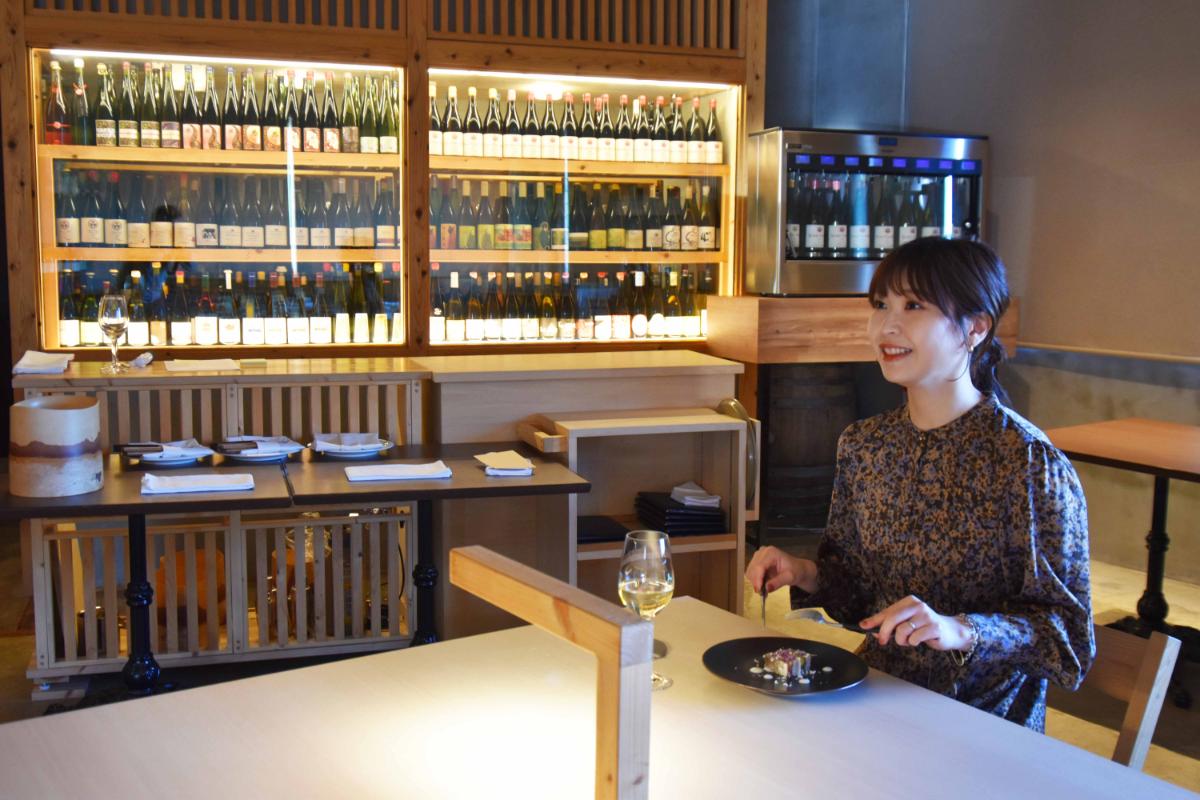 1階のレストランでは、ランチ6600円(6~7品)もディナー1万6500円(全8品)もコースのみを提供。腕を振るうのは京都の老舗日本料理店や、スペインの世界的なレストランガイドでも星が付くレストランなどで修業してきた料理長の仁木偉さん。「余市は港が近くすばらしい品質の魚介が揃ううえ、うま味が強い野菜からも地力を感じます。高級食材が最高の状態で食べられます」と話してくれました。コース料理は最後のデザートまで、地元の食材を積極的に使った“余市料理”。潮風を浴びて育ったブドウを丁寧に醸した余市のワインは、この地でとれる海の幸や野菜、フルーツと驚くほど相性が抜群です。