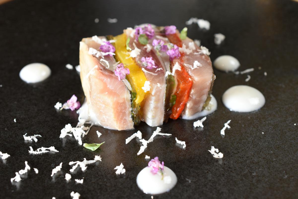 店主が釣り上げた魚など、市場には出回らない珍しい魚介もいただけるイタリアン「Mare Blu(マーレ ブルー)」。店主の大岩さんは北海道各地の沿岸で釣りをたしなみ、何度も通って食材の豊かさに惹かれた余市に、2021年店をオープンしました。釣った魚を船上で活締めし、熟成させた魚は最高潮にうま味がのった状態になるそうで、魚好きでなくてもわくわくします。また、野菜は顔の見える生産者のものを厳選し、味が濃く糖度がぐっと高いトマトやエグミのない仁木町のパプリカなど、地元食材の濃い味わいが楽しめます。