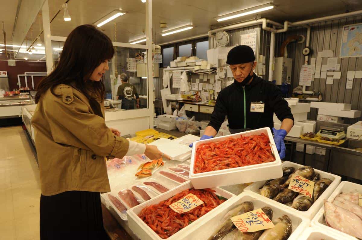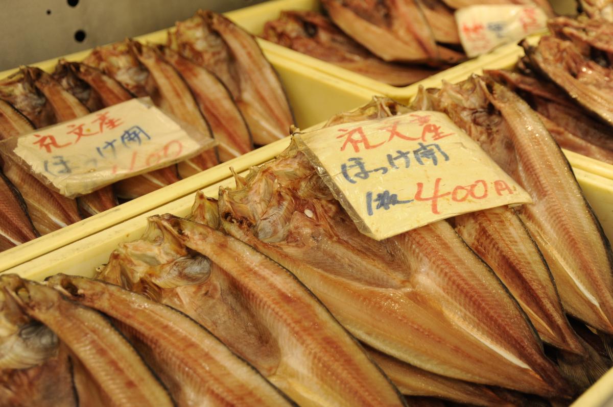 余市近郊を中心に北海道の魚介が集まる鮮魚売り場には、水揚げされたばかりの甘海老や、丸々太った魚介が大集合。余市の魚を知り尽くした店員さんにおすすめやおいしい調理法を聞けるのも地元ならでは。宅配にも対応しているので、白子をおなかにたっぷり詰めたタラなど大きな魚も自宅へ配送することができます。夏(5~8月)は余市産のウニ、秋は新物のイクラ、冬は蝦夷アワビなどが旬を迎えます。