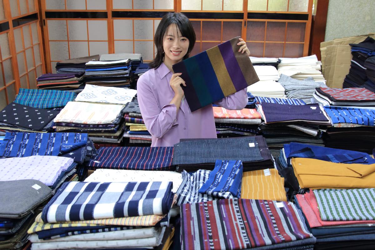 久留米絣の布地のほか、兵庫県の播州織、鹿児島県奄美の泥染、滋賀県の高島ちぢみなど種類も豊富でどれにしようか迷います。生地によって肌触りや履き心地も変わるので、はき比べをしながら自分に似合う一枚を見つけましょう。