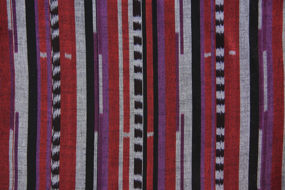 久留米絣は糸の束をあらかじめ染めておき、経糸(たていと)と緯糸(よこいと)を編み上げて複雑な模様を表現します。模様といってもプリントのようにくっきりとした絵柄が現れるわけではありません。「染め」で表現される模様の輪郭は一部がかすれたり、じんわりと揺らいだりしています。しかし、この“ゆるさ”のなかにあるほのぼのとした味わいこそが久留米絣の大きな魅力です。