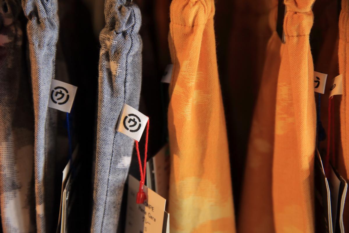 また、「うなぎの寝床(旧寺崎邸)」から徒歩3分ほどの場所にある「うなぎの寝床(旧丸林本家)」では、作業着モンペを現代風にアレンジした200種類以上の「MONPE」9900円~を販売。サイズはS 、M、 Lの3つで、種類によっては2L、3Lといった大きなサイズや子ども用のものも。形はシルエットがスタイリッシュな「現代風」と、昔ながらのゆったりとした「ファーマーズ」の2種類を展開しています。