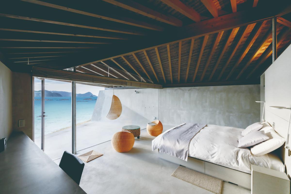 奄美大島の北部、笠利町に4つのスタイルの宿泊施設をもつ「伝泊」。「伝泊 The Beachfront MIJORA」はその名前とおり、ビーチフロントにヴィラが20棟並んでいて、アマミブルーの海を独り占めするような滞在ができます。部屋と外を隔てるのは大きなガラス窓だけ。昼間には雄大な景色、夜には満天の星が広がり、自然と対話する時間が有意義なことを教えてくれます。