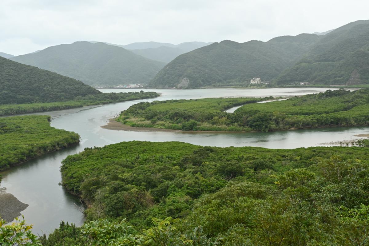 マングローブの林を形成する「オヒルギ」の花。タコのような赤い花が印象的です。マングローブの林があるのは、役勝川と住用川が合流する付近。河口付近は山からの栄養分や土砂が流れ込み、植物はもちろん、リュウキュウアユやミナミトビハゼ、ミナミコメツキガニなど、この地ならではの多種多様な生き物が生息しています。季節や時間を変えると見られる生き物が変わるとのこと。季節ごとに訪れても新しい発見がありそうです。