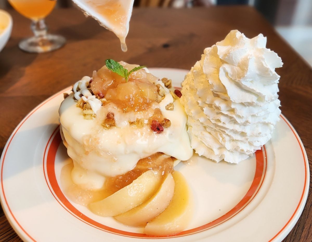 大人気の白桃のパンケーキ