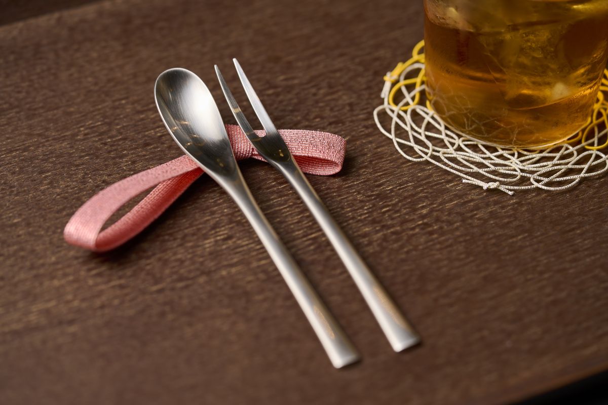 さまざまなアクティビティが揃うOMO5金沢片町。加賀⽔引の特徴である⽴体的な結びを実体験し、その場で使って楽しめる「加賀⽔引 津⽥⽔引折型」監修のアクティビティ「水引カトラリーレスト作り」も体験できます。