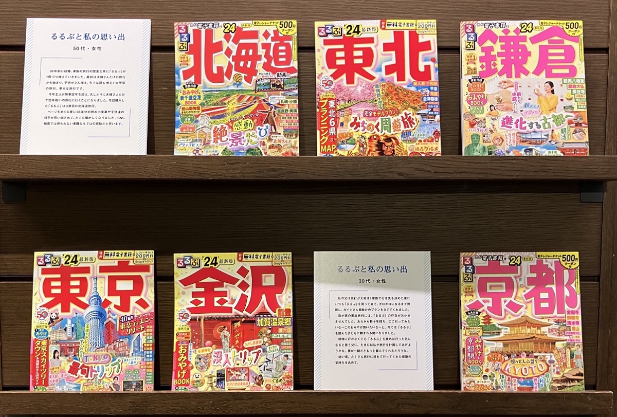 ほかにも、「るるぶ50周年年表」や、るるぶ50周年記念動画「人生に、もっと思い出を。」、さらに大好評の児童書「るるぶマンガとクイズで楽しく学ぶ!」シリーズなどのパネル展示もあります。