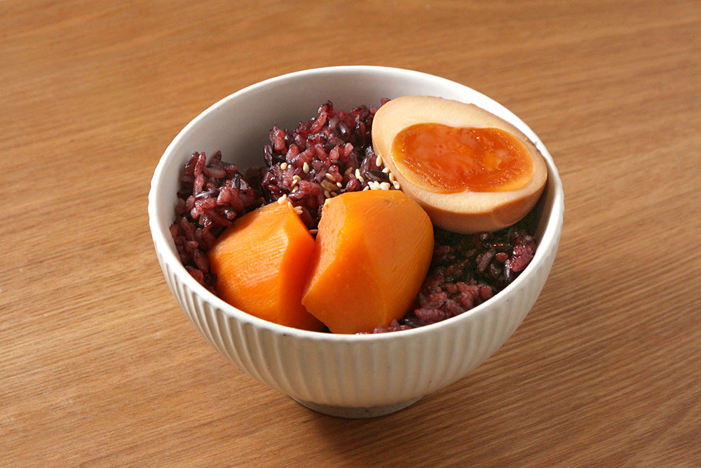 お米にもこだわっていて、花蓮産のオーガニック黒米を使っています。香ばしくて、ぷちぷちとした食感が楽しく、栄養価も高いといいこと尽くし!ねっとりと甘いサツマイモと、オーナーの手作りという半熟卵も添えられて、満足度抜群のごはんです。筆者の義理のお母さん(台湾人)も、ごはんを炊くときによく一緒に黒米やサツマイモを入れています。