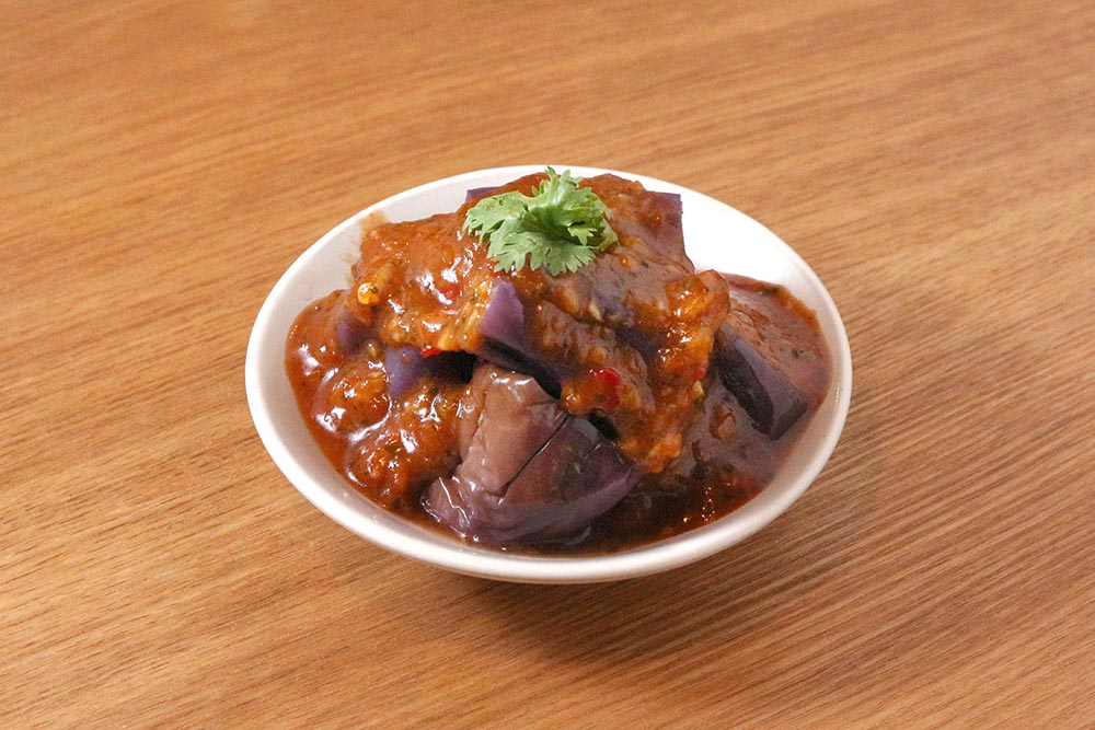 こちらはナスの炒め物で、自家製の「五味醬(ウーウェイジャン)」というピリ辛のソースと和えてあります。全体的に優しいお味の定食の中で、濃い味のソースが登場するあたりが絶妙!ごはんがすすみます。