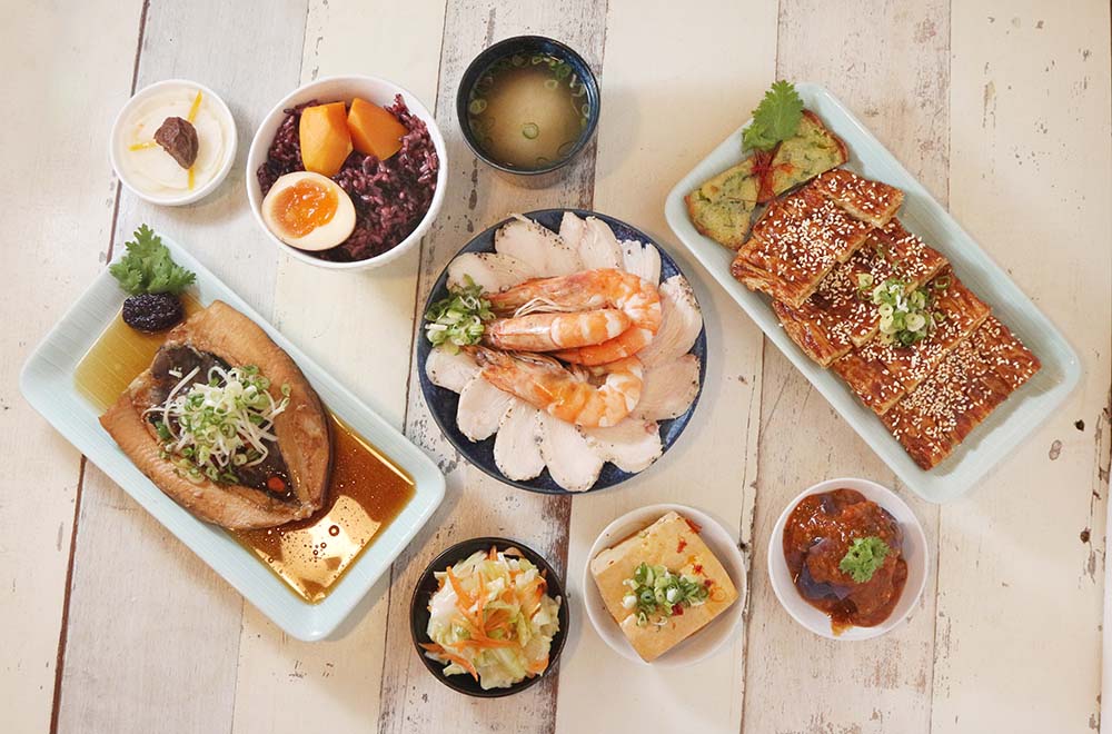 メニューは主に定食で、メインは牛すね肉、チキンスープ、魚のサバヒーなど種類も豊富。上の写真は、鶏むね肉と茹で海老が両方楽しる欲張りセットです。鶏むね肉は、「馬告(マーガオ)」という台湾原住民料理に使われるスパイスで味付けしたあと、低温調理でじっくり火を通したもの。お肉はしっとりやわらかく、山椒のようなぴりっとした辛さに加えて、レモングラスのような香りがします。海老はなんとオーナーのお父さんが高雄で養殖しているもので、急速冷凍でお店に直送されるのでとっても新鮮!港などで食べるのと同じくらいプリップリで甘く、お店の看板メニューの一つです。