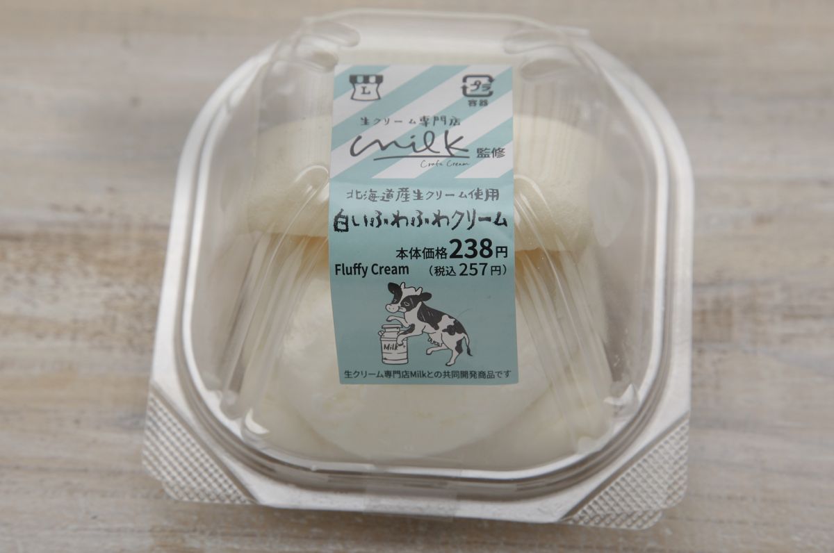 まず一つ目は、立体的なプラケースに入った「Milk監修 白いふわふわクリームサンド」257円。