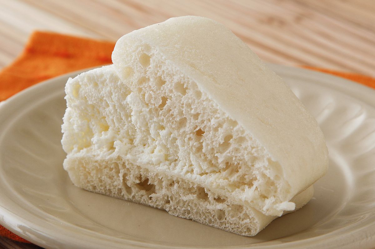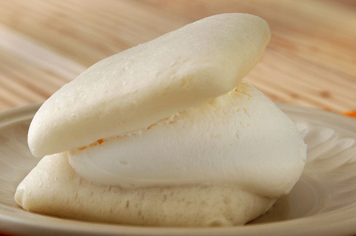 パオ生地とは、中国料理で登場する蒸しパンの一種。断面を見ると、中に気泡がたくさんあり、指で押すと、スッと沈みます。