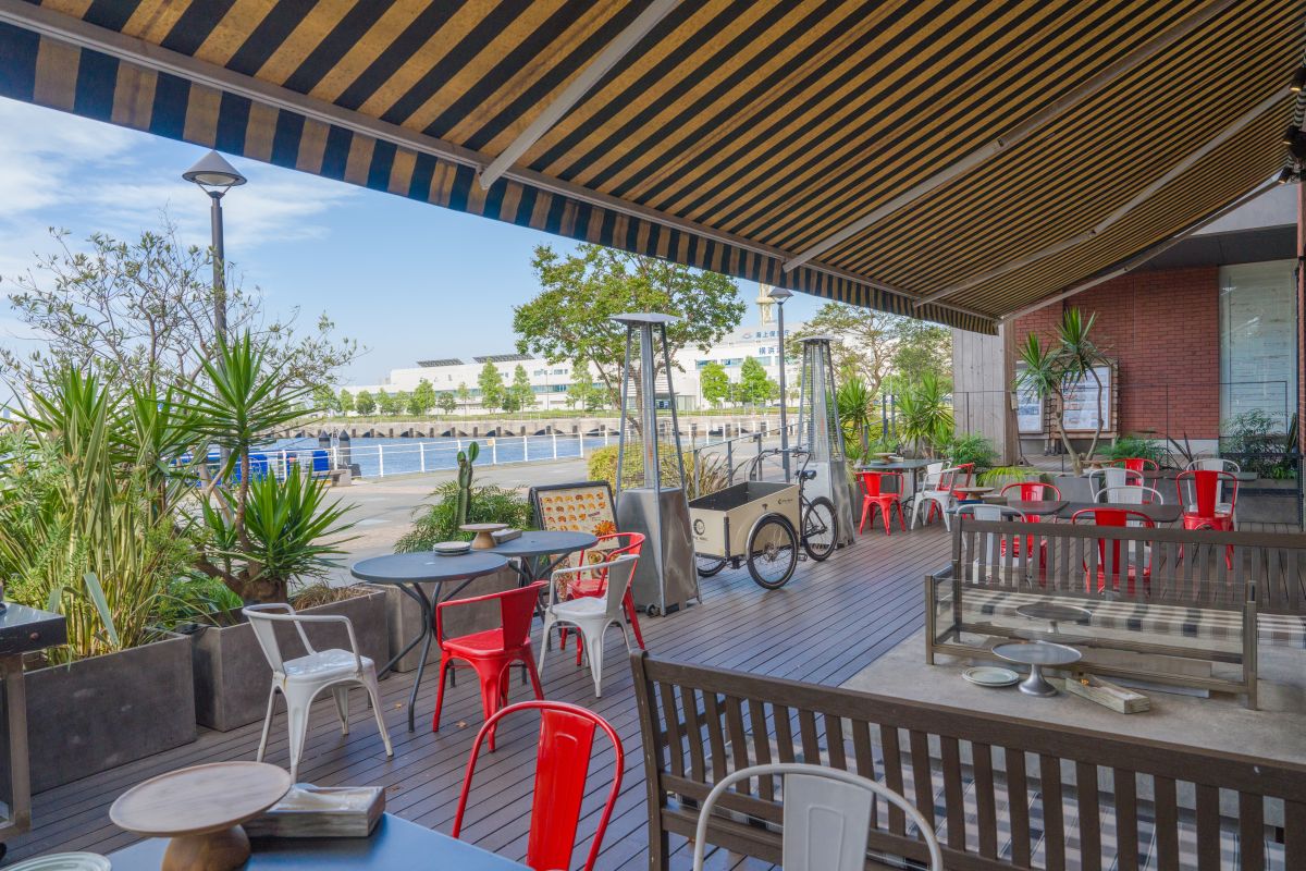 お天気のいい日にはテラス席もおすすめ。横浜港を眺めてのんびりするだけで、日本とは思えないリゾート感を味わうことができます。テラス席であれば、ペット同伴もOK。観光客はもちろん、ワンちゃん連れの地元の人にも人気だそうです。
