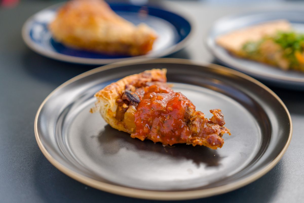 最後が「とうもろこし・ほうれん草・ベーコンのパイ」。パイとひと口に言っても、豊富な具材やソース、生地の違いなど、それぞれ工夫されているので食べ比べるのが楽しい! パイのサイズ感がちょうどいい塩梅で、たくさん食べられるのもうれしいポイントです。
