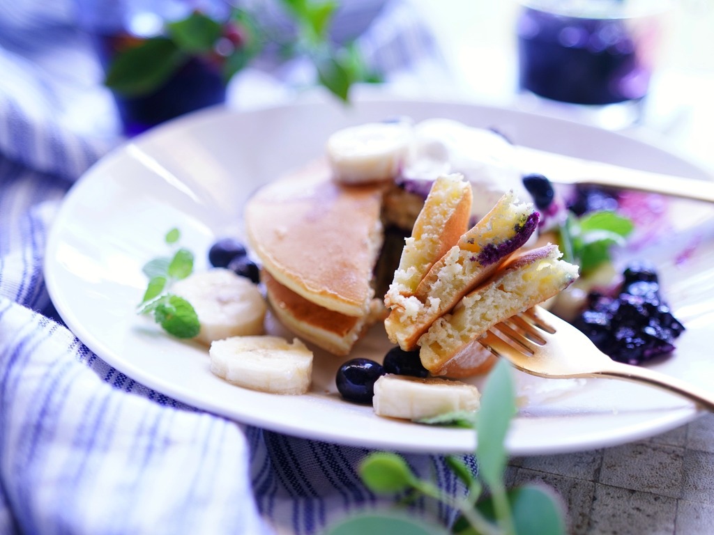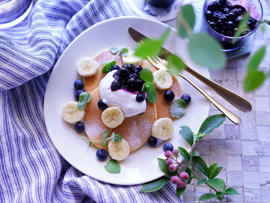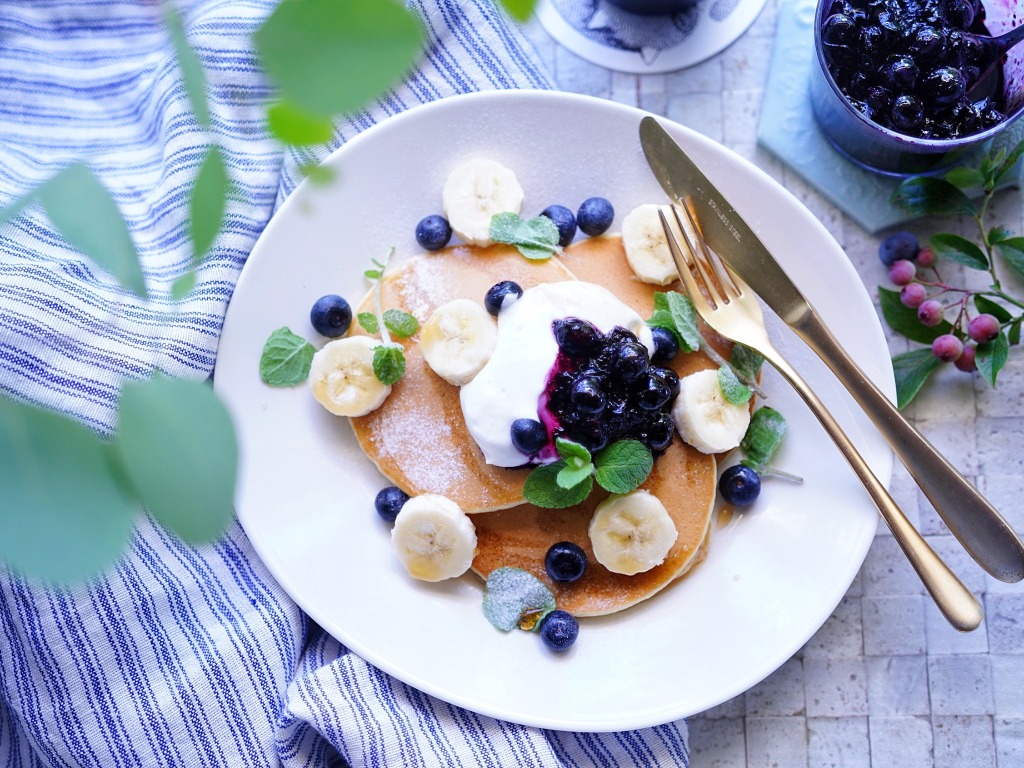 爽やかブルーベリーのパンケーキで夏の朝ごはん【kyoko_plusのレシピ&テーブルコーデvol.58】