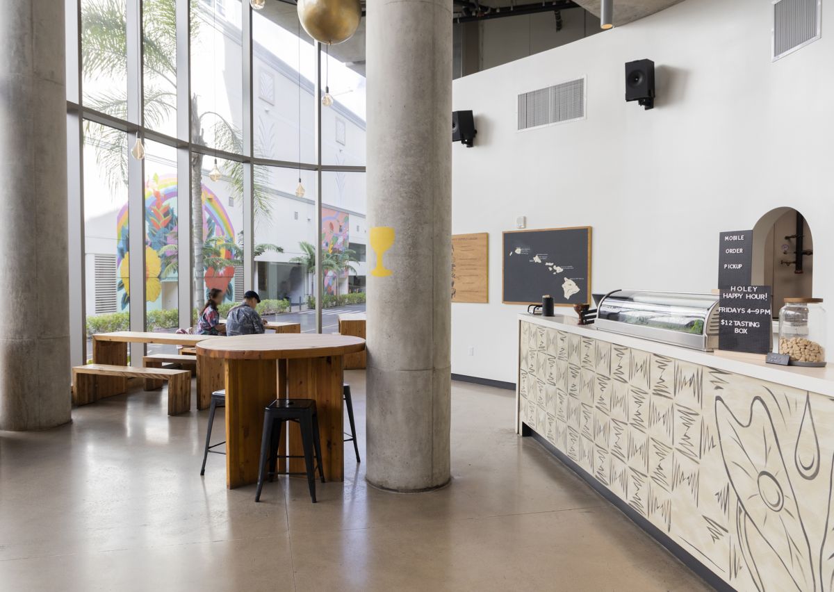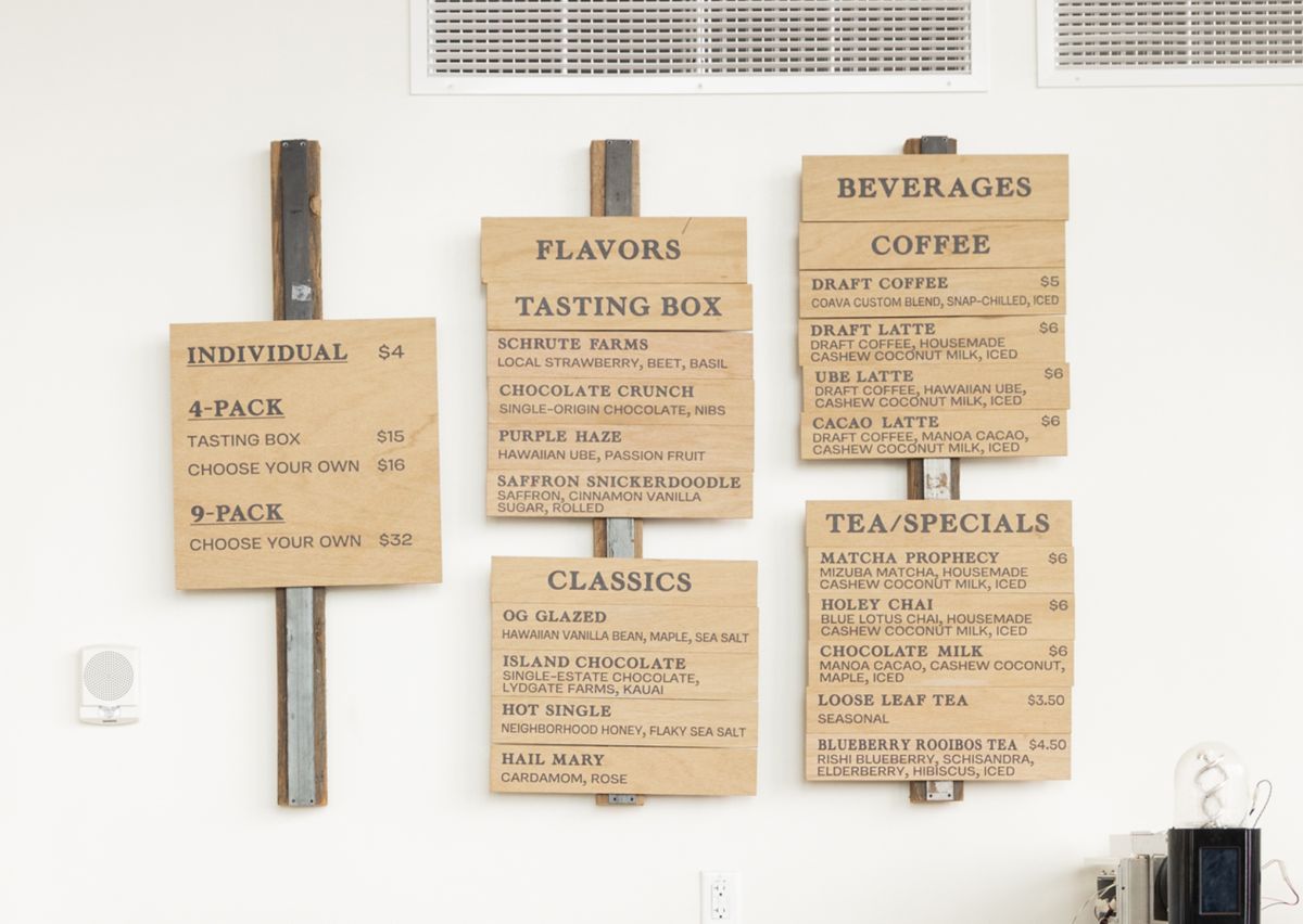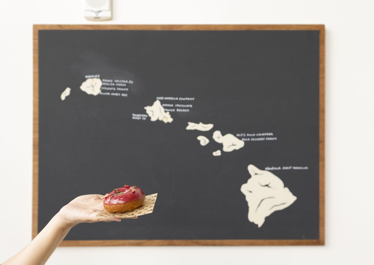 店内には、ハワイ諸島のマップとともに、提携しているファームや養蜂場の名前が紹介されています。また、最近では、ローカル企業やNPO団体などとのコラボフレーバーも、マンスリーで登場しているそう。いろいろな形で地元のコミュニティーとサポートしあっている姿勢も素敵ですね。