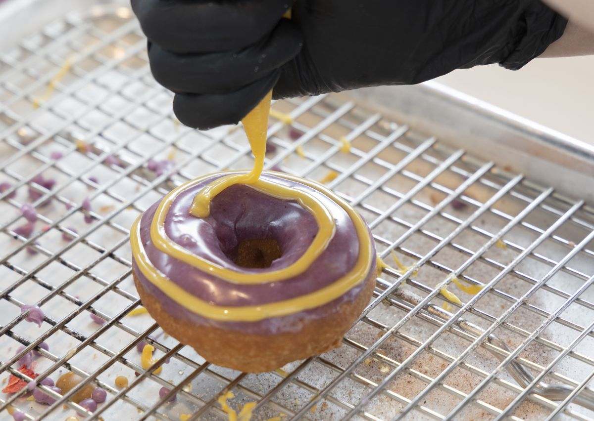 ひとつひとつ丁寧に手作業でデコレーションされるドーナツたち。美しいその姿は、まさにアートのよう。間近でその作業を見られるのも楽しいですよね。