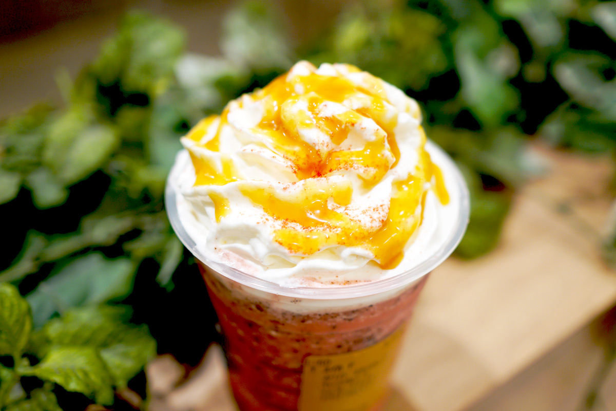 スイカ塩を振りかけたホイップクリームを混ぜると、甘じょっぱくてクセになるスイカアイスクリームに早変わり。味変も楽しめて、1杯で2度おいしい…なんて贅沢なフラペチーノなんでしょう♪