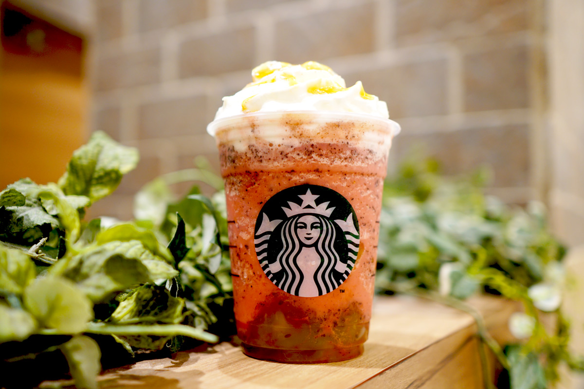 サマーシーズン第3弾の「GO! Summer Trip 夏まるかじり」コンセプトのもと誕生した「GABURI スイカ フラペチーノ®」。“まるでスイカ”な真っ赤な色合いと、みずみずしい果汁を凝縮したような力強い味わいを表現するため、スイカジュースにドラゴンフルーツの果肉とパッションフルーツ果汁の入ったソースがブレンドされています。