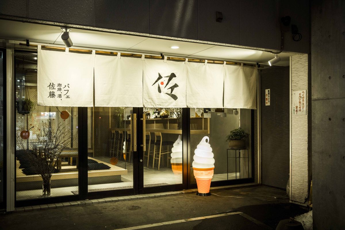 ローカル色の濃い、狸小路の東端に暖簾を掲げる「パフェ、珈琲、酒、佐藤」
