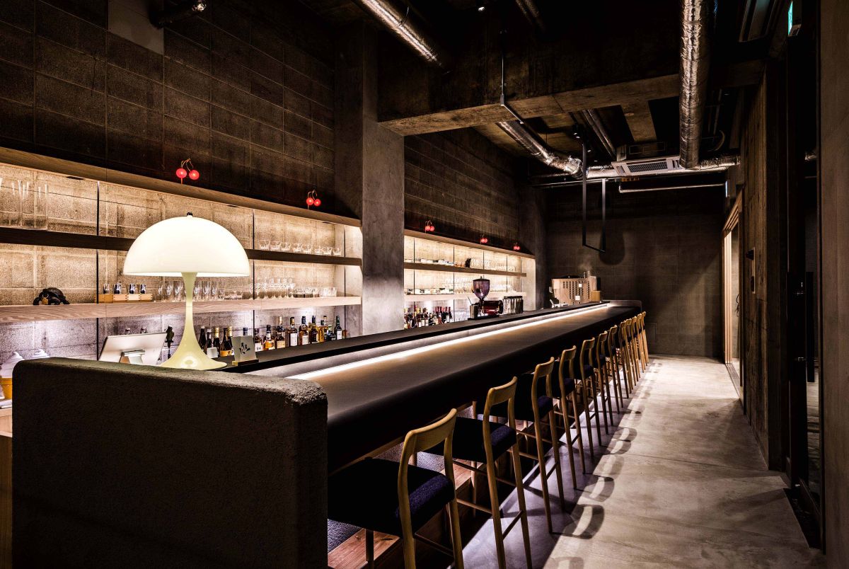黒塗りのカウンター席が奥まで続き、隠れ家的な雰囲気が漂います。製造室を併設し、ガラス越しに製造している様子が眺められるのも、こちらの魅力。男性客にも気軽に立ち寄ってほしいとの思いから、シングルモルトやブランデーの品揃えを充実させたそう。