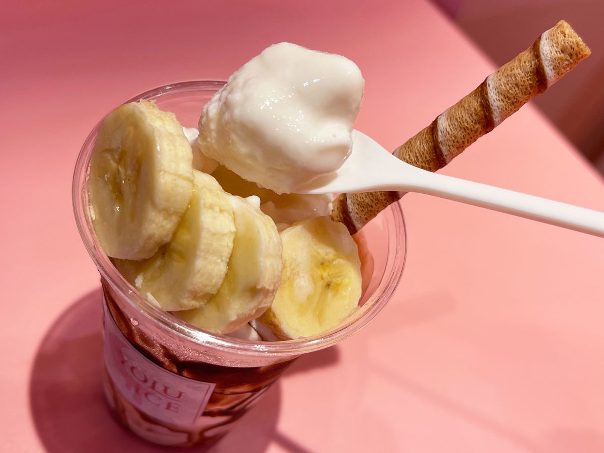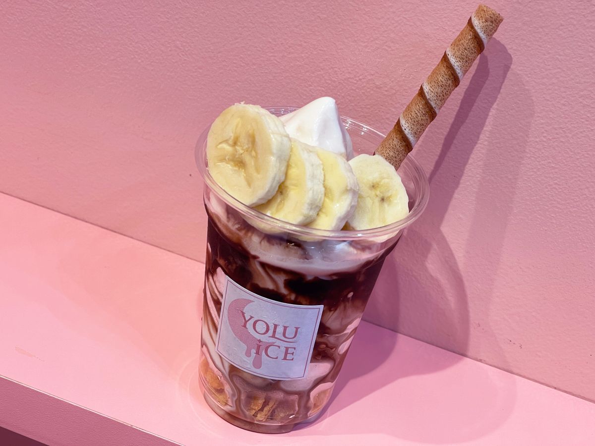 「チョコバナナ」は、子どもから大人まで愛される王道の味。「YOLU ICE」でも定番メニューとして、安定の人気を誇っています。