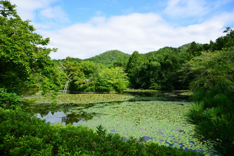 晴れた日には青空や雲が池に映る幻想的な光景を目にすることも。1周約15分の散策をするのもおすすめです。