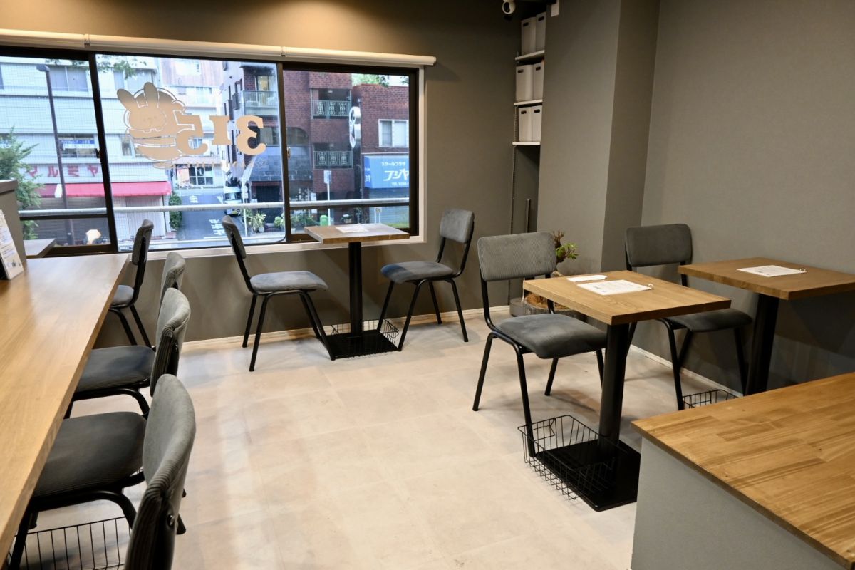 「315」は東京メトロ東西線の早稲田駅1番出口から徒歩6分、早大通り沿いにあるビルの2階にあります。グレーを基調に、木の素材感が温かみを添える空間です。