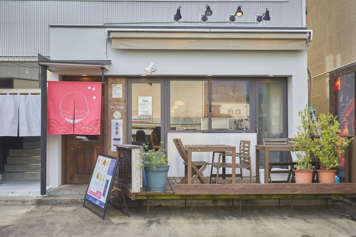地下鉄北山駅2番出口を出るとすぐ目と鼻の先。歩いて1分もかからない距離にある「かき氷とまるまる ツギノメ」。創作炭火串焼きが人気の居酒屋「アジロ印」の昼の時間を利用した間借り店舗です。