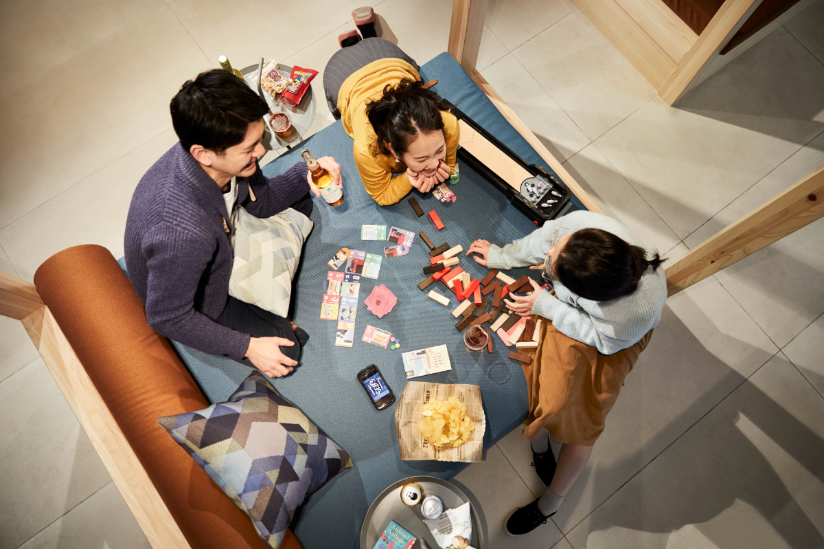 食事はホテルから徒歩圏内にある7つのレストランで。 和食のカジュアルダイニング「村民食堂」をはじめ、イタリアン、スパイス料理、中国家庭料理などバラエティ豊かなジャンルからその日の気分で選べます。どれにしようか仲間とアレコレ相談するのも楽しい時間。