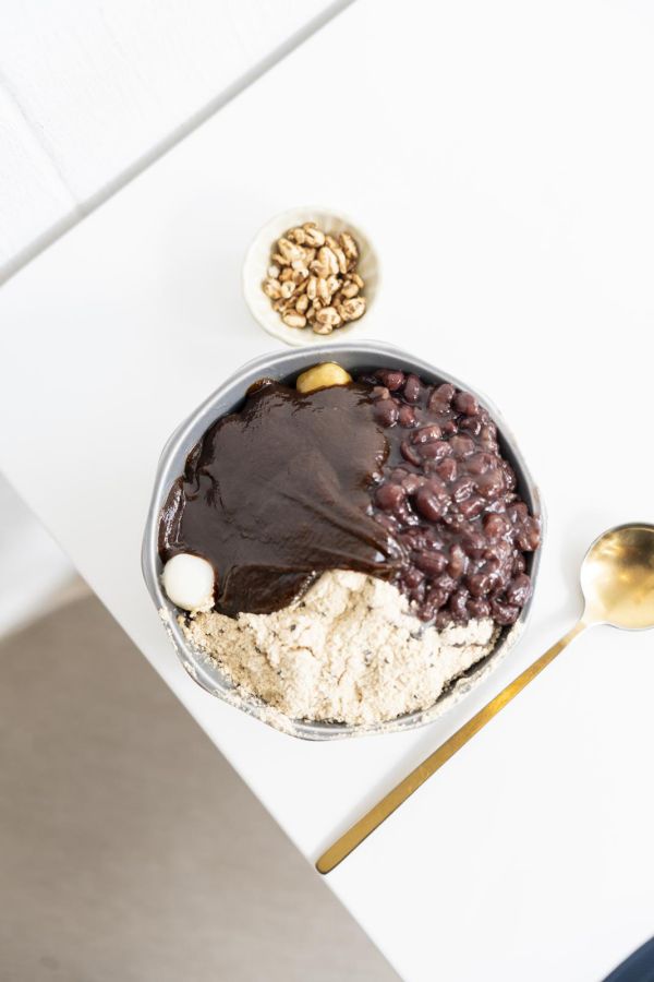 地瓜圓はタピオカパウダー、片栗粉、そしてさつまいもから作るお団子で、芋圓はタロ芋バージョン。麵茶粉は小麦粉に砂糖やラード、ゴマなどを加えて炒ったもので、はったい粉(麦こがし)のように香ばしいのが特徴です。商品名にある「花生醬」はピーナッツバターのことで、お店オリジナルのもの。乳製品を一切加えず、ピーナッツの割合が高くて超濃厚!台湾のおいしいピーナッツの味を存分に味わえますよ。