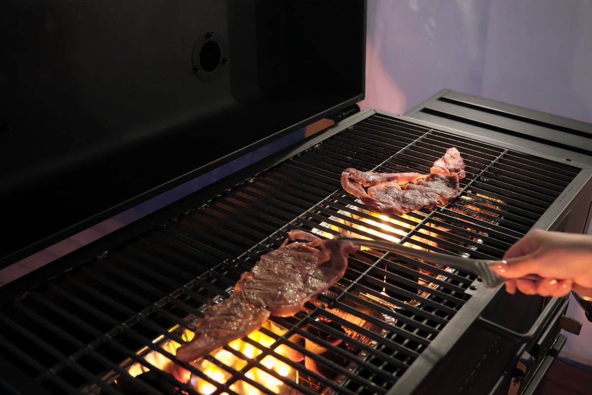 夕食は、各テラスのウッドデッキに設置されたBBQコンロで、自分で焼いて食べるスタイルです。