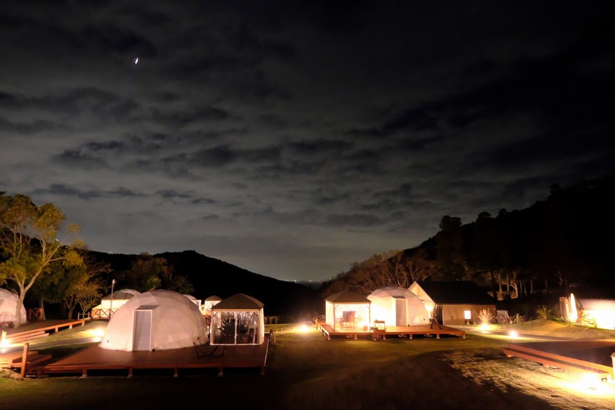 夜のキャンプ場。この日はあいにくの曇り空でしたが、天気がよければ満天の星空を楽しめるのだそう。次回のお楽しみということにしておきます。
