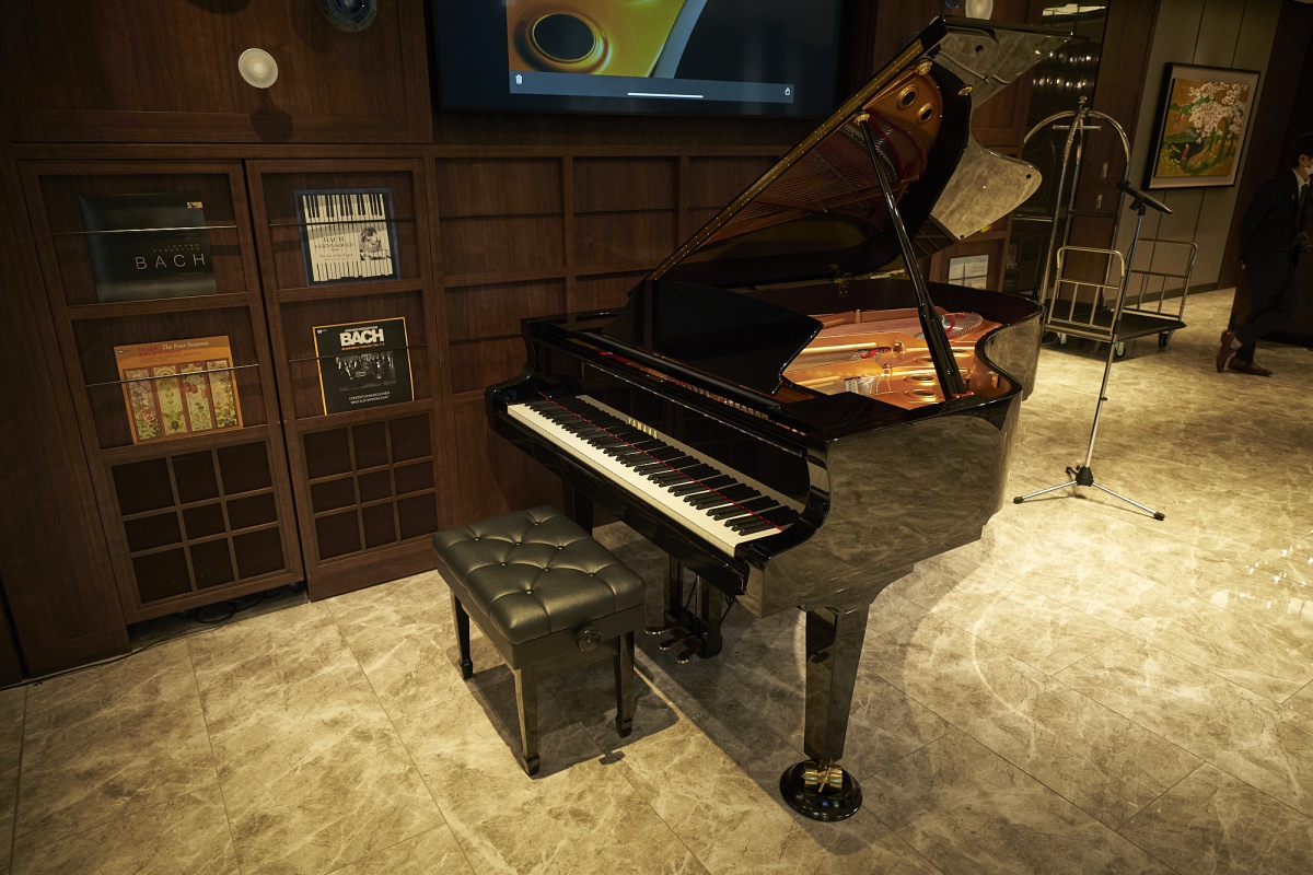 ロビーラウンジにはYAMAHAの最新自動演奏機能付きグランドピアノ「S6X-ENPRO」が置かれていて、バッハの心地よい音楽でゲストをお出迎え。