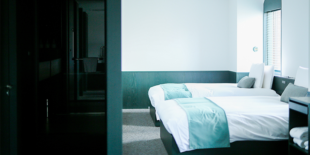 人気No.1の客室「SUPERIOR TWIN ROOM」にはテレビやソファーはなく、ベッドとシャワールーム、トイレというミニマムな造りですが、これは昼間はホテルの1階~2階のスペースをリビングルームのように、夜は客室をベッドルームとして使って欲しいという「DDD HOTEL」ならではのこだわりポイント。
