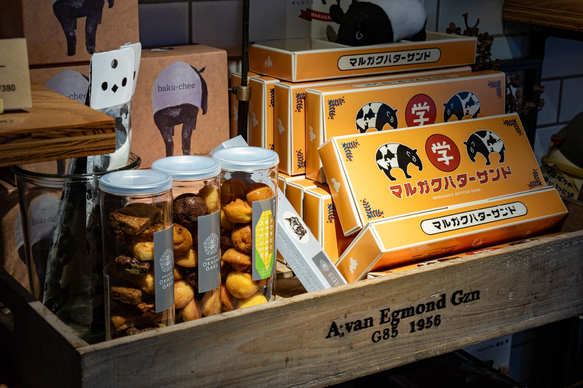 姉妹店のパティスリー「OKASHI GAKU」のスイーツの販売コーナーも