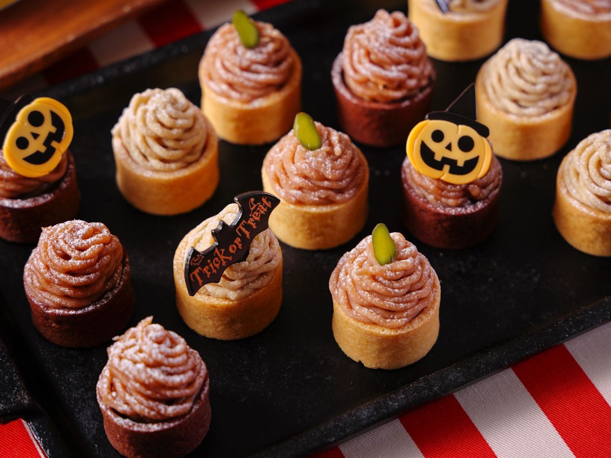 ハロウィンをテーマにした秋のスイーツが勢揃い!3種のモンブラン食べ比べ