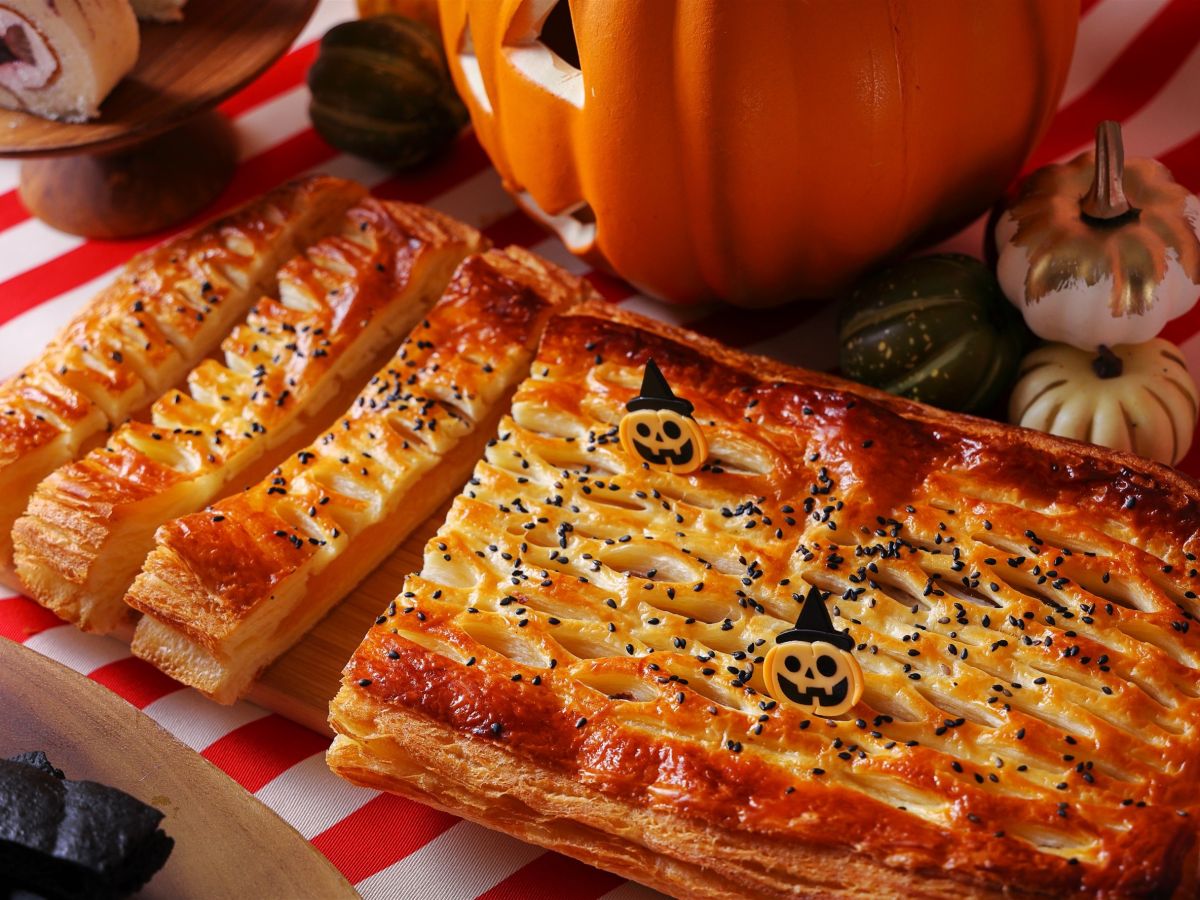 かわいいジャックがのっている「スイートポテトパイ」は、サクサク生地と芋の甘さがよく合います。