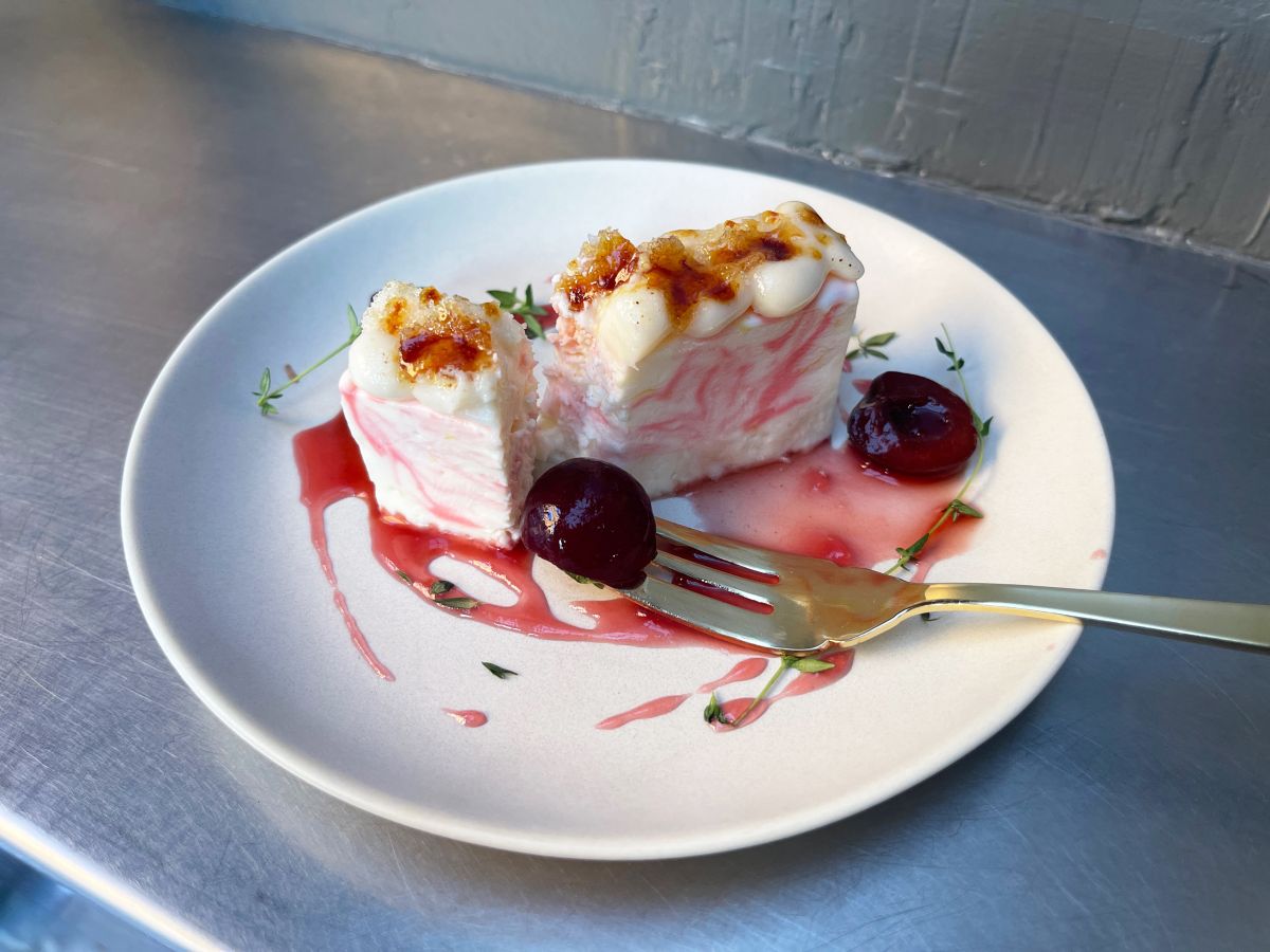 「レアチーズケーキさくらんぼ カルダモンとコリアンダー」イートイン 750円 ※夏の終わり頃まで販売予定