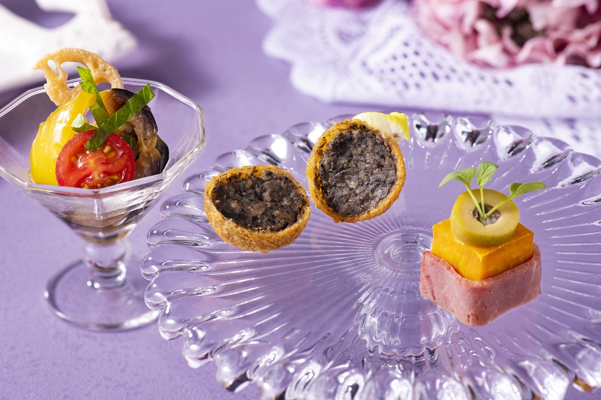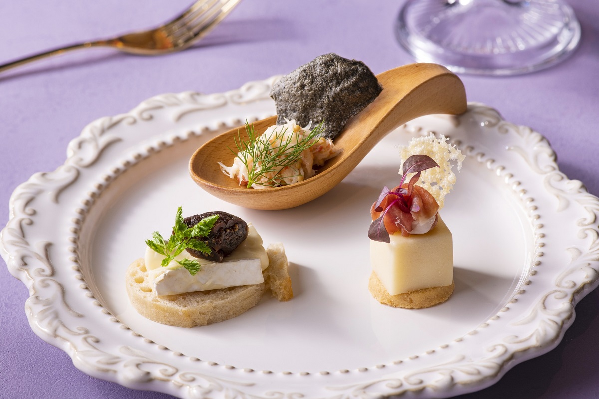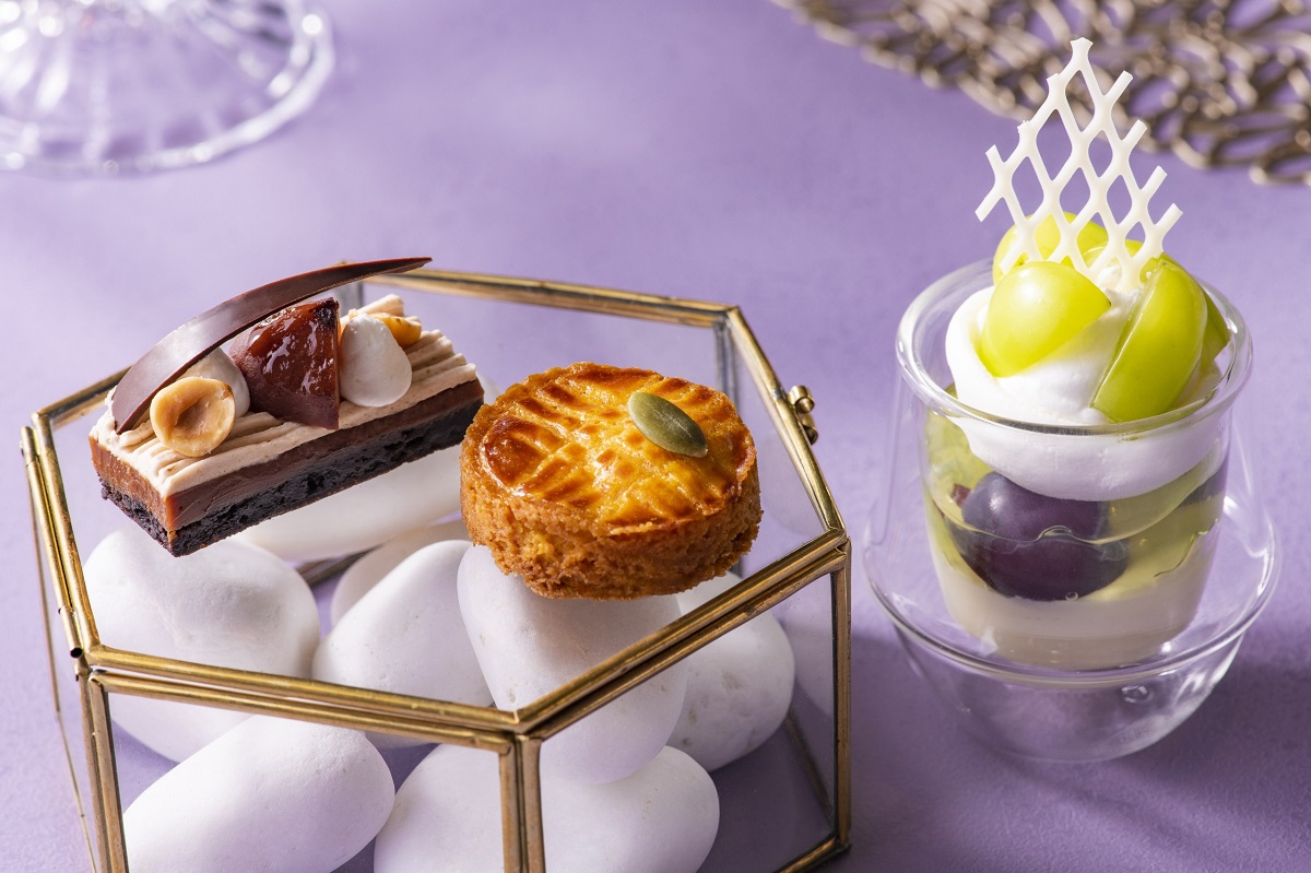 セイボリーには、真っ黒なホタテのチップを添えたズワイガニのサラダや、生ハムとパルメザンチーズの塩味がアクセントの洋梨のパンナコッタ、黒トリュフをふんだんに混ぜ込んだクロケットなど、全6種類が登場します。甘みや塩味、酸味など、一品一品綿密に計算されたシェフこだわりの料理を、秋の味覚とともに楽しみましょう!