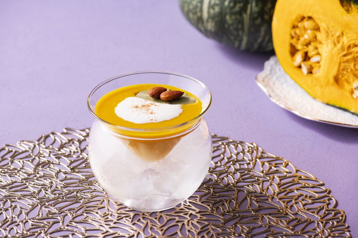 「オータムアフタヌーンティー」開催期間限定で、あらごしのカボチャを使用した、秋らしい濃厚な味わいのモクテル「Whisper of Autumn(秋のささやき)」850円(税・サービス料込)も別途販売されます。シナモン、ナツメグ、カルダモンの3種類のスパイスが、カボチャの自然な甘みをより一層引き立てます。心地よい秋の趣を感じられる一杯です。