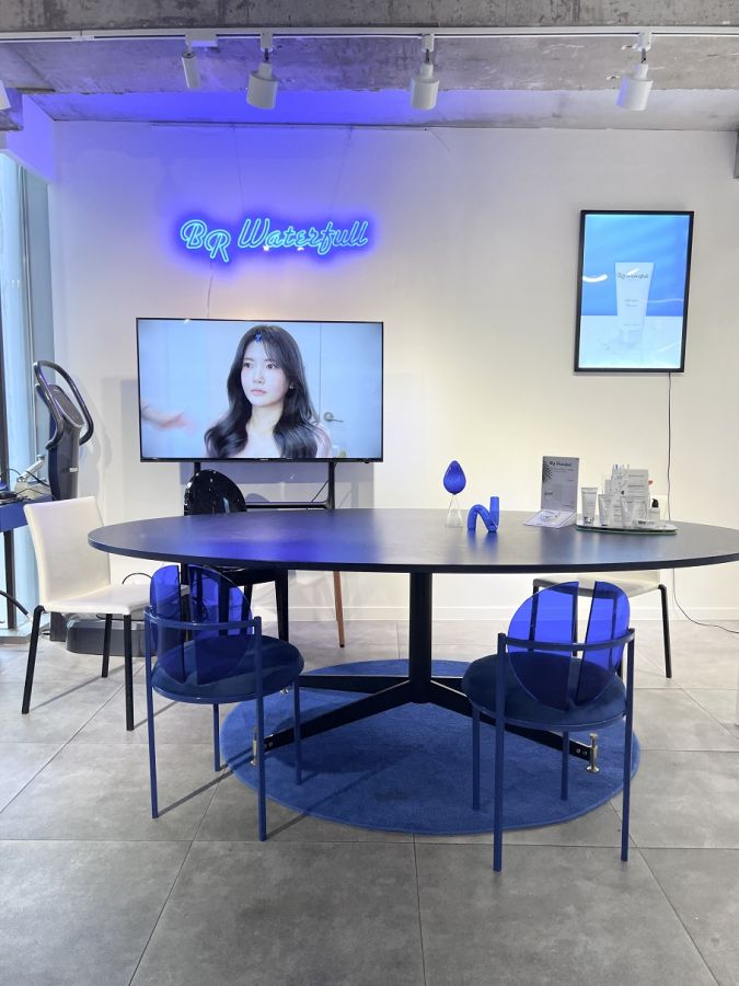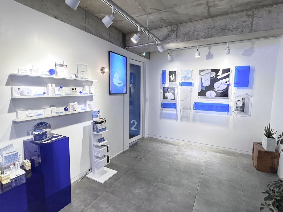 地下鉄3号線狎鴎亭(アックジョン)駅2番出口から歩くこと15分。1階にスターバックスが入っているビルの2階に位置しており、店内はブルー&ホワイトのインテリアとなっていて、デイリーケアでいつでも行けてしまうようなポップで入りやすい雰囲気です。狎鴎亭という土地柄、価格も高いのでは?と思いがちなのですが、実際はボディーもフェイシャルも10万ウォンから体験できる良心的な価格になっています。