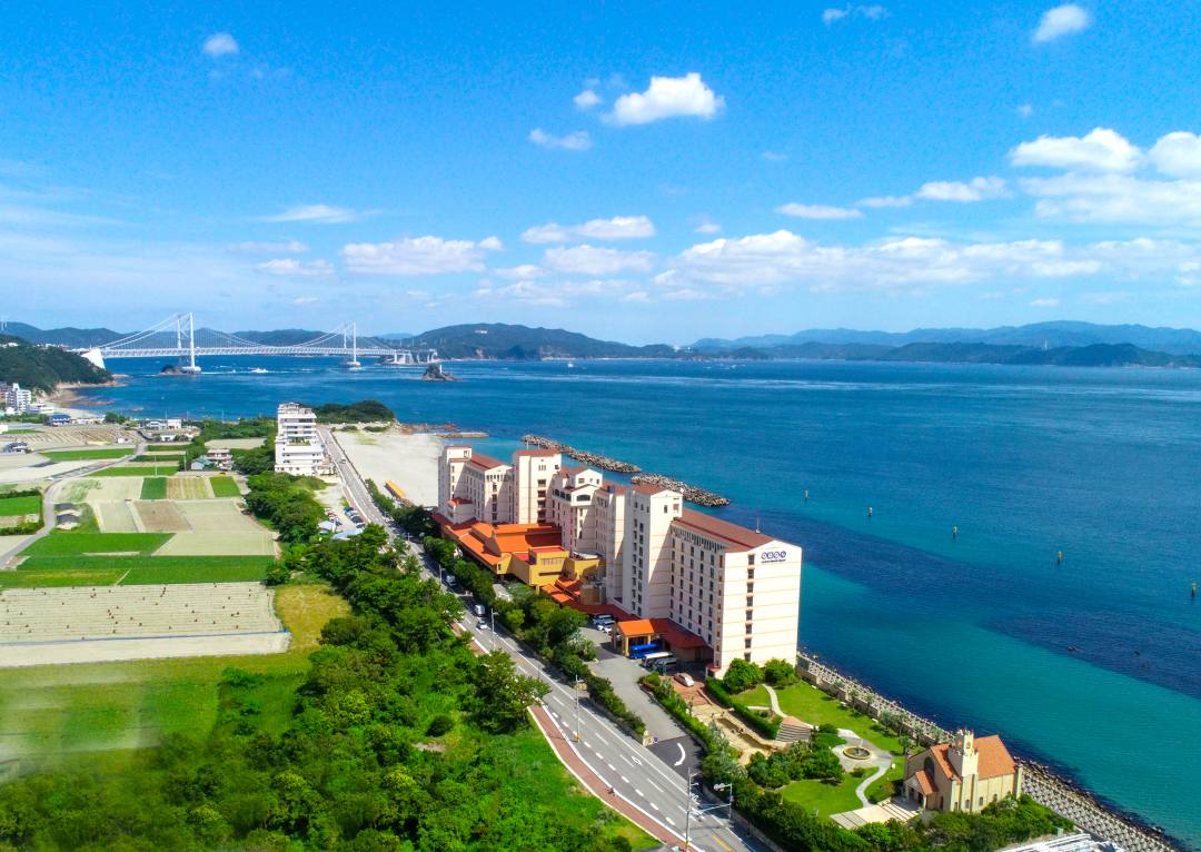「アオアヲ ナルト リゾート」は瀬戸内海国立公園に位置し、淡路島から車で約10分の距離。目の前には鳴門海峡が広がり、朝日や、満月とその前後には月の光が海面に反射されて描かれる「ムーンロード」を眺めることができます。