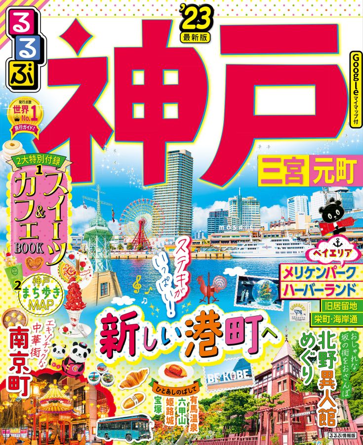 北野異人館街、南京町、ベイエリアはじめ定番観光エリアはもちろん、神戸スイーツや神戸牛などの人気グルメスポットまで、最新おでかけ情報充実の『るるぶ神戸 三宮 元町'23』は好評発売中です。